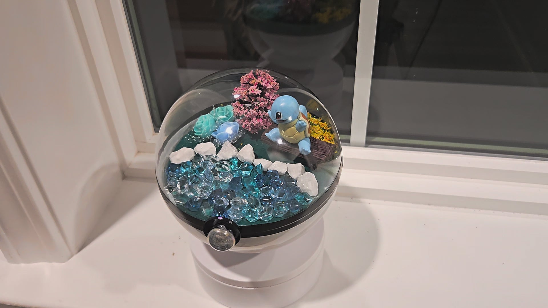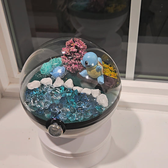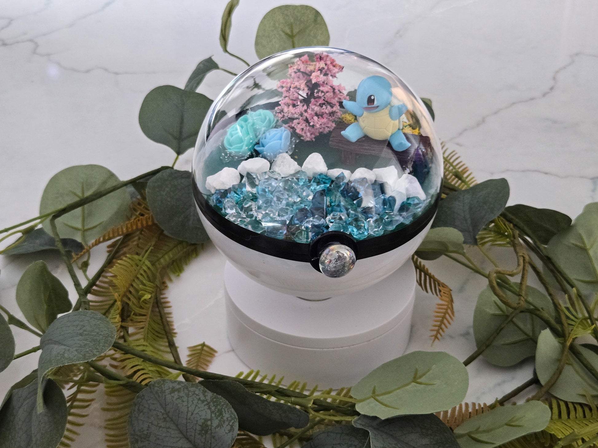 Lovingly handcrafted with a mix of natural stones, crystals, and faux plants, this miniature world captures the calm spirit of everyone’s favorite Water-type starter. It’s the perfect gift for Pokémon fans, gamers, and collectors who love a blend of nature and nostalgia!